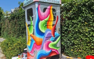 Besonders auffällig ist das neue Graffiti des Künstlers MMTartist, das die Bücherbox nun in neuem Glanz erstrahlen lässt.