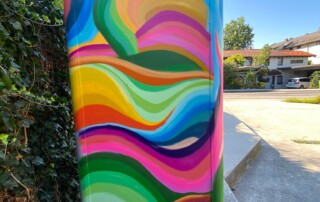 Mit lebendigen Farben und kreativen Motiven zieht das Kunstwerk die Blicke auf sich und macht die Bücherbox zu einem wahren Hingucker.