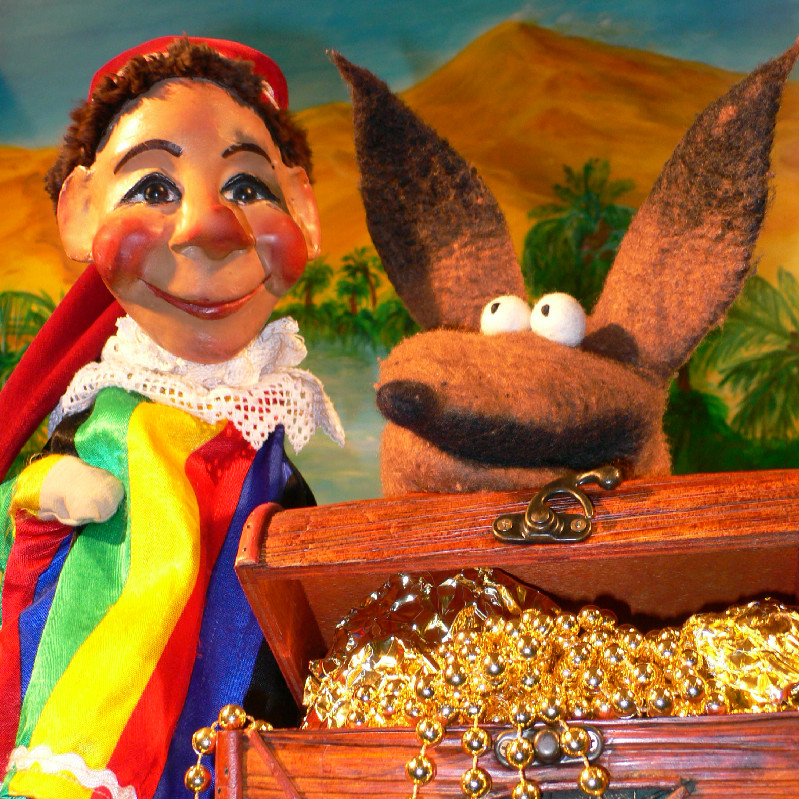 Kasperl und die Bananenspur Chichi, der Piratenaffe und Coco, der Piratenpapagei stehlen den königlichen Schatz. Seine Majestät, der König, bittet Kasperl und Strolchi um Hilfe. Zum Glück hinterlassen die beiden Piraten eine Bananenspur. Wo die wohl hinführen wird? Eintrittskosten EUR 5,- pro Kind EUR 3,- pro Begleitperson Wir freuen uns